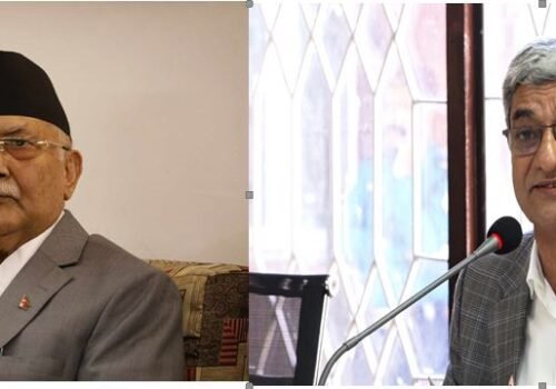 पूर्वप्रधानमन्त्री केपी शर्मा ओली र गृहमन्त्री रमेश लेखक पक्राउ ।