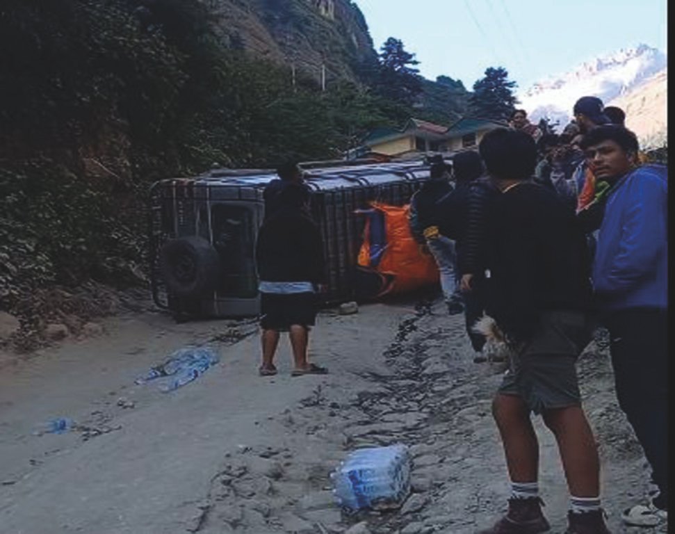धरापानी, बेसीशहर–चामे सडक खण्डको धारापानीमा आज ग १ ज ६९४२ नम्बरको यात्रुबहाक बोलेरो जिप पल्टीएको छ ।