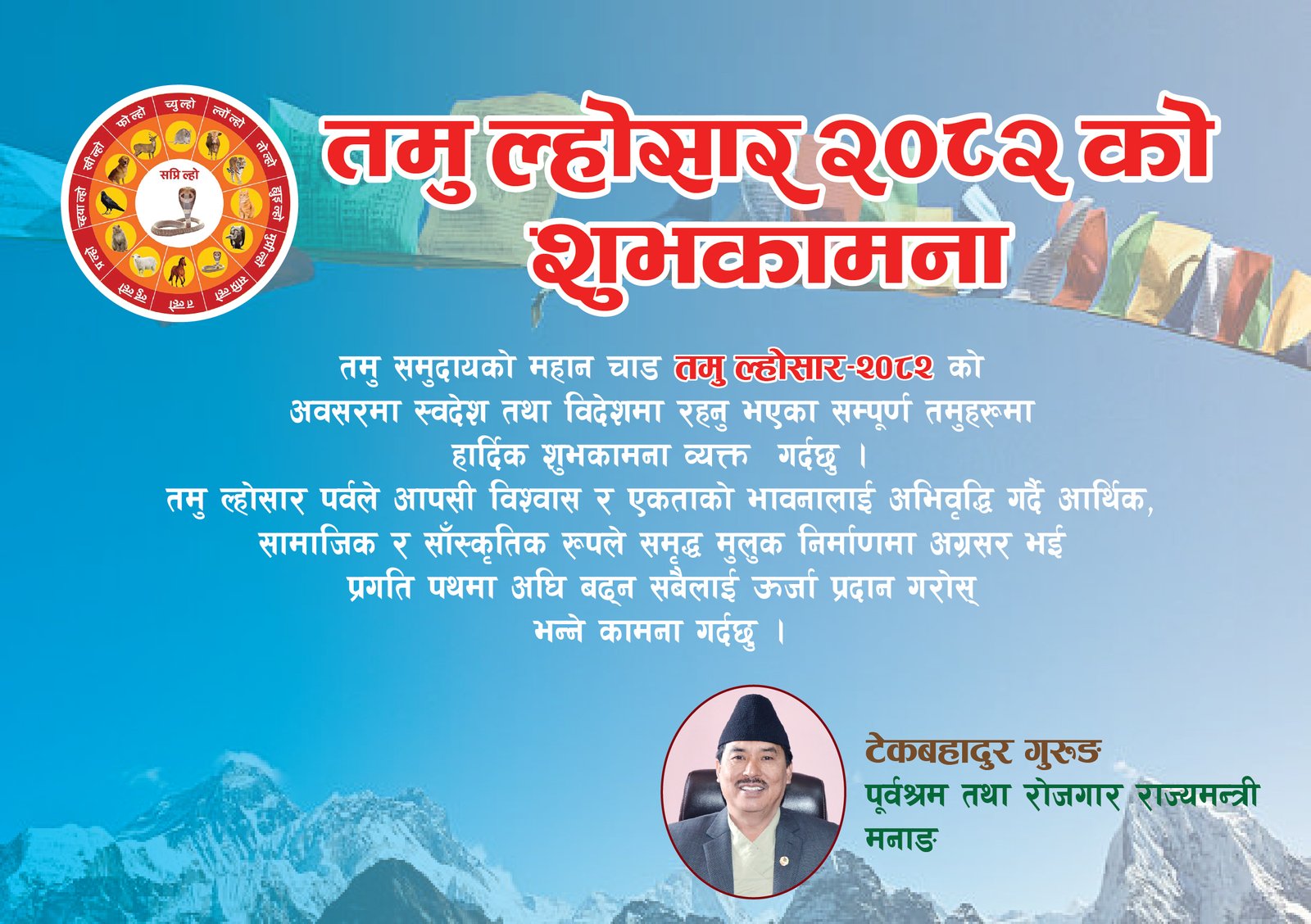 काठमाण्डौँ, तमु (गुरुङ) समुदायले पुरानो वर्षलाई बिदाइ गरी नयाँ वर्षलाई स्वागत गरेर आज तमु ल्होसार पर्व मनाउँदैछन् । ल्हो को अर्थ ‘वर्ष’ र ‘सार’को अर्थ फेरिनु अर्थात सार्नु भएकाले वर्ष फेरिने दिनलाई ‘तमु ल्होसार’ भनिएको हो । तमु ल्होसारलाई गुरुङ समुदायले नयाँ वर्षका रूपमा भव्य रुपमा मनाउँछन् ।