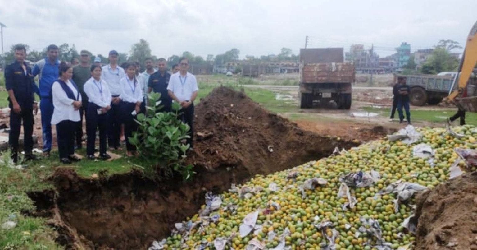 प्रतिबन्धित रसायन ‘कार्बाइड’ हालेर पकाएको आँप नष्ट ।