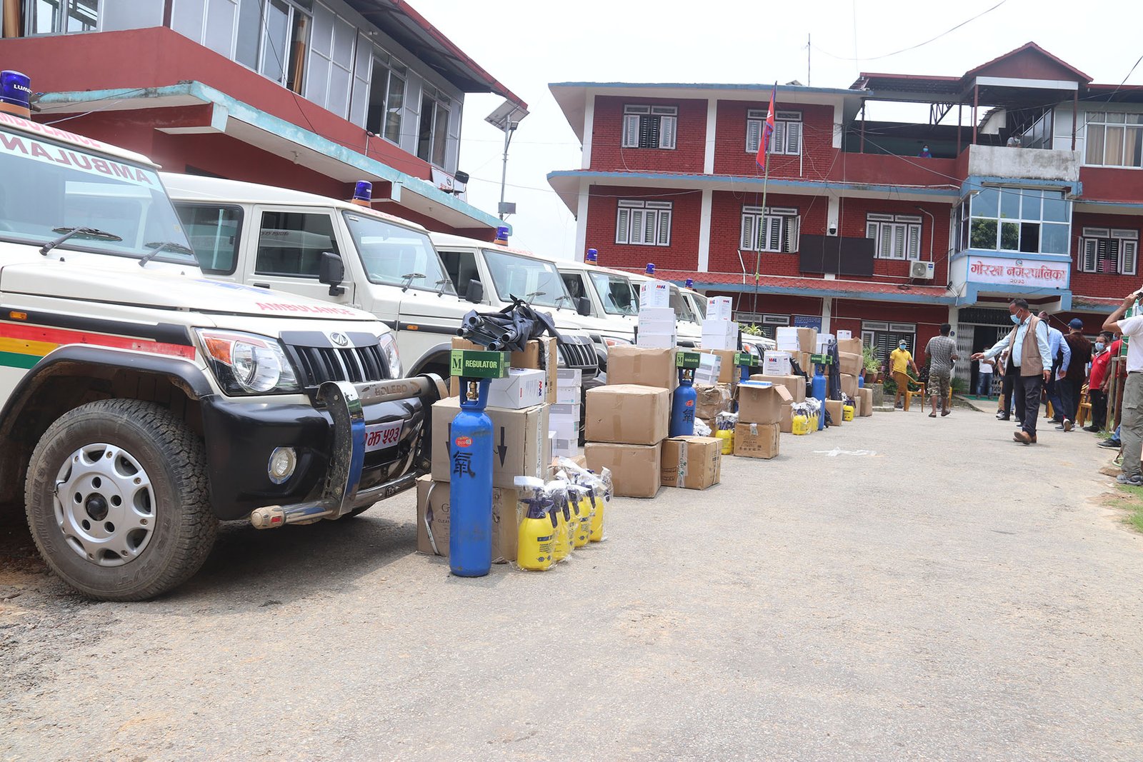 गोरखाका छ स्थानीय तहलाई निशुल्क एम्बुलेन्स वितरण ।