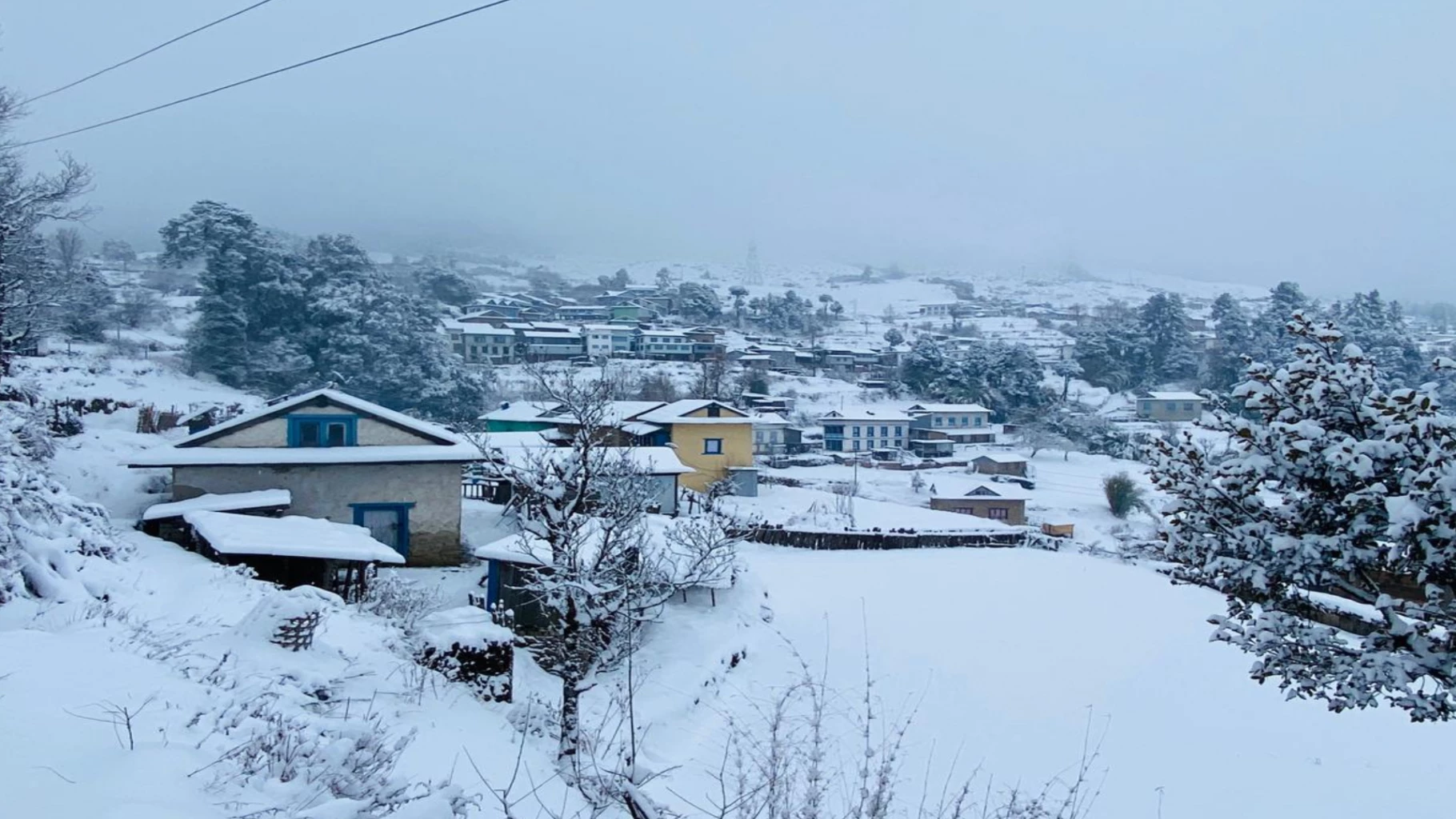 हिमपातले मध्यपहाडी लोकमार्ग अवरुद्ध, मनाङमा पनि सोमबार बिहानदेखि हिउँ पर्यो ।