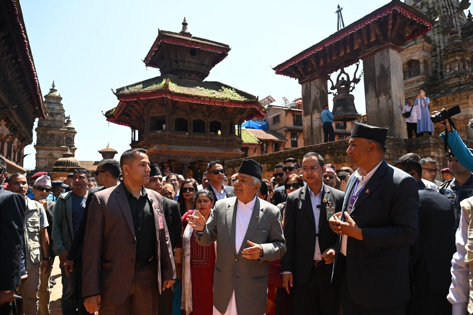 राष्ट्रपति रामचन्द्र पौडेल भक्तपुरको दरवार स्क्वायरमा ।